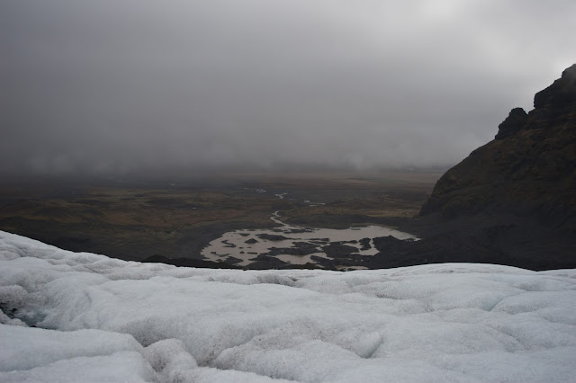 The view was alien and unbelievable - in the short moments when the clouds cleared you could see all the way to the ocean. Along the way we dodged crevasses and moulins - vertical shafts that are formed when rocks melt straight through the glacier.