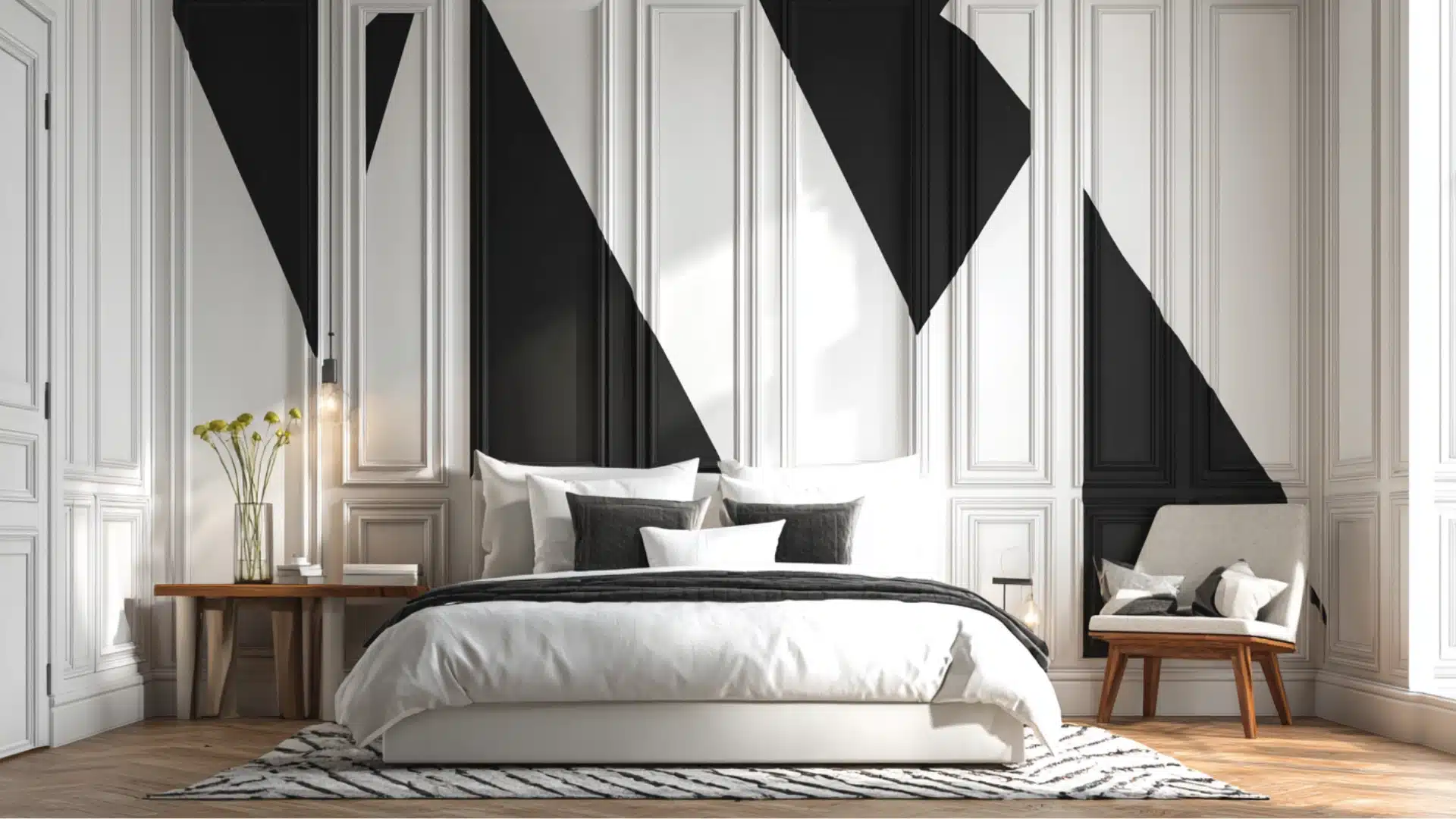 Sharp geometric patterns in black and white create a high-contrast, modern look that feels graphic and intentional.