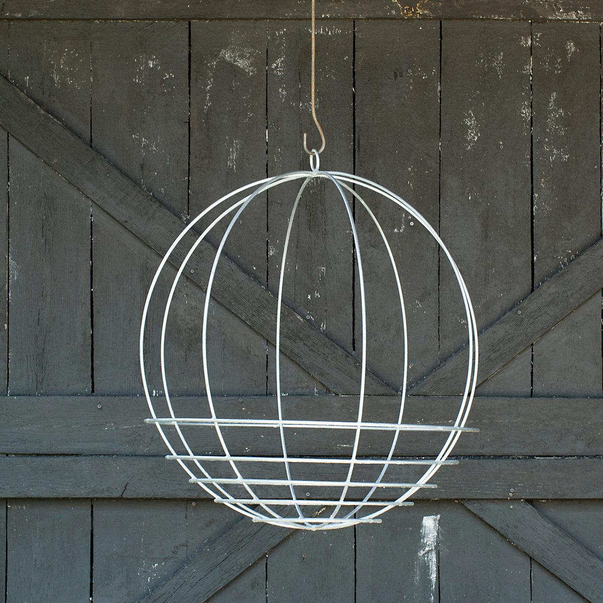 double curtain rod in old world brass // zinc sphere hanging basket // sheer voile panel